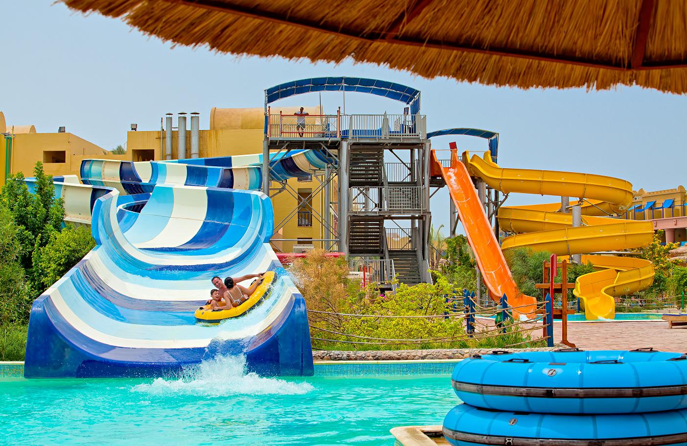 From its gently sloping beach overlooking the Red Sea to the towering slides and splash features of the on site waterpark, there’s plenty of fun to be had here! There is plenty of grown-up relaxation too, with a huge freeform swimming pool, expensive sun terrace and indulgent spa treatments. There’s a choice of restaurants for every taste, plus four bars and a disco.