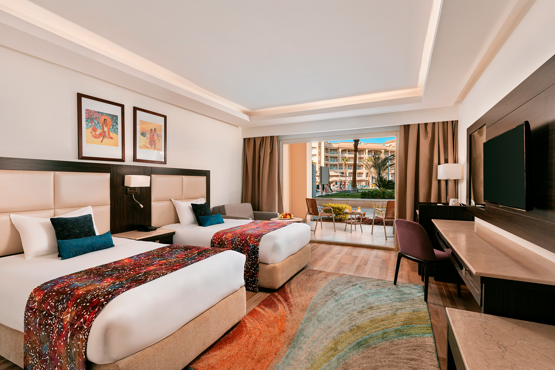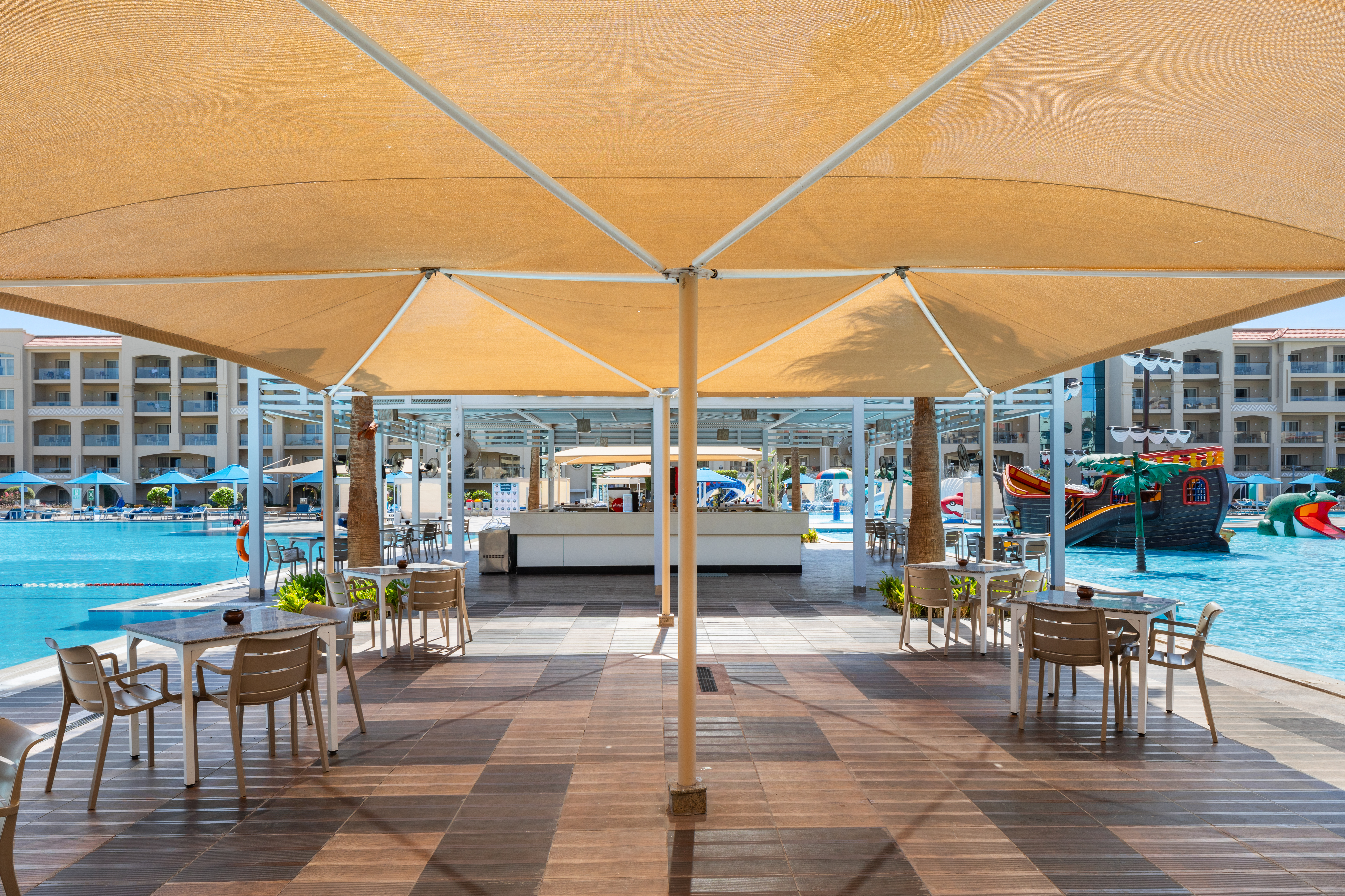 The resort combines a long sandy beach and sparkling pools with a lively atmosphere, varied dining, and entertainment for all ages.
